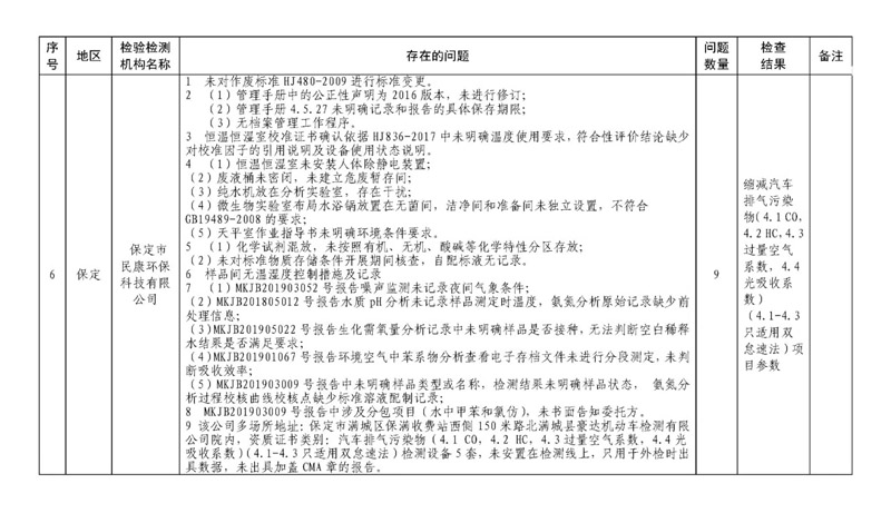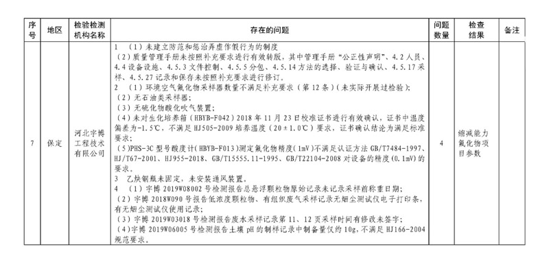 42 | 保定 | 河北鵬測技術服務有限公司 | 6 | 整改(暫停) |