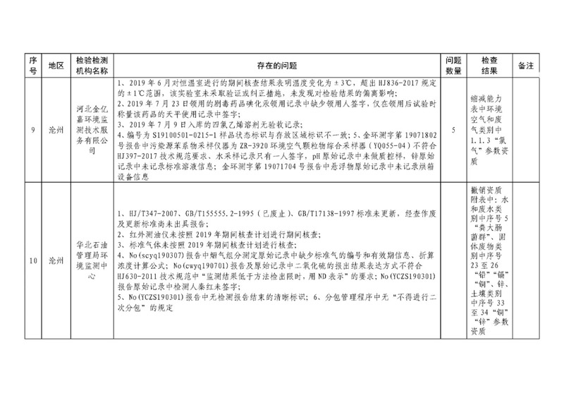 10 | 石家莊 | 河北君康檢測技術服務有限公司 | 10 | 整改(暫停) |