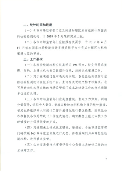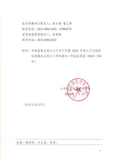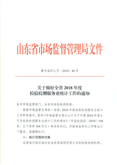 關于做好全省2018年度檢驗檢測服務業統計工作的通知(魯市監科認字[2019]80號)